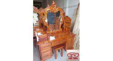 - Bàn trang điểm được thiết kế theo phong cách cổ điển với những họa văn chạm nổi ấn tượng, kiểu dáng tinh tế với những đường nét mềm mại. Với kích thước tiêu chuẩn 107 x 170(70) x 40cm, ghế cao 40cm, phù hợp với thể trạng người Việt Nam, dễ dàng trong việc thao tác & sử dụng.