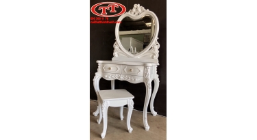 - Bàn trang điểm được thiết kế theo phong cách cổ điển với những họa văn chạm nổi ấn tượng, kiểu dáng tinh tế với những đường nét mềm mại. Với kích thước tiêu chuẩn 107 x 170(70) x 40cm, ghế cao 40cm, phù hợp với thể trạng người Việt Nam, dễ dàng trong việc thao tác & sử dụng.