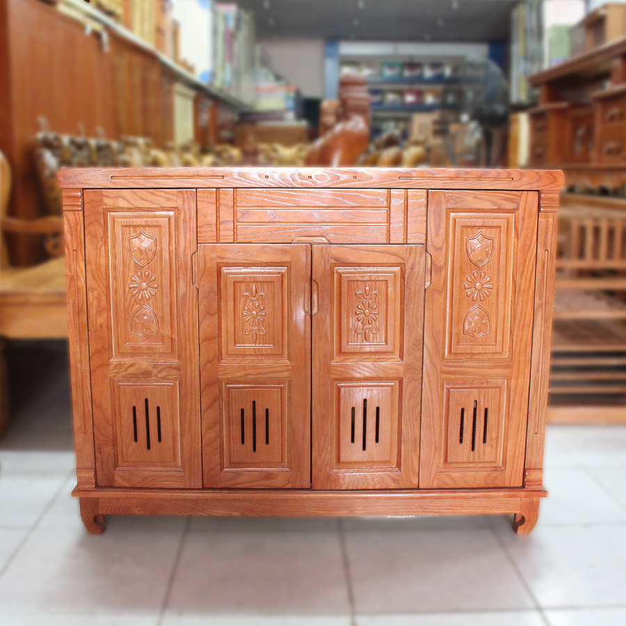 Gỗ Gội thuộc nhóm gỗ quý hiếm, vân gỗ đẹp, màu gỗ tự nhiên trầm ấm, thớ gỗ cứng mịn chắc chắn qua xử lý chống mối mọt, cong vênh cho độ bền đẹp vĩnh cữu. Tủ giày gỗ gội với thiết kế nhiều ngăn tiện dụng tạo không gian chứa đồ thoải mái cho người dùng và tạo hình tao nhã, thanh lịch chắc chắn sẽ giúp góc phòng nhà bạn thêm sang trọng, đẳng cấp hơn.